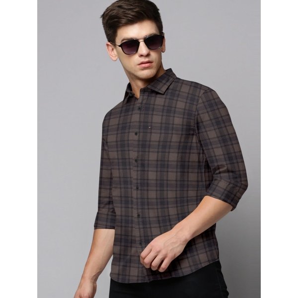 SPIN CART 100% Cotton Shirt for Men, Regular Fit Full Sleeve Casual Formal Shirt (Large, Brown)