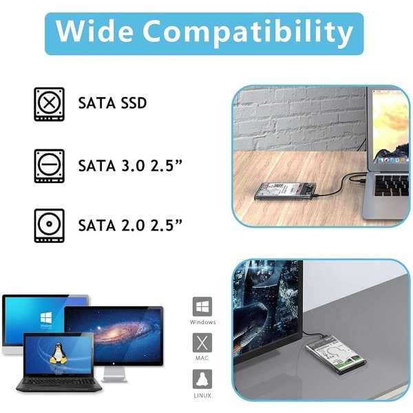 - Widely Compatible with Samsung hdd or ssd with sata port, compatible with Western Digital, compatible with Toshiba.2.5 sata ssd. Support win10 / win8 / win7 / winxp / Vista and Linux OS.