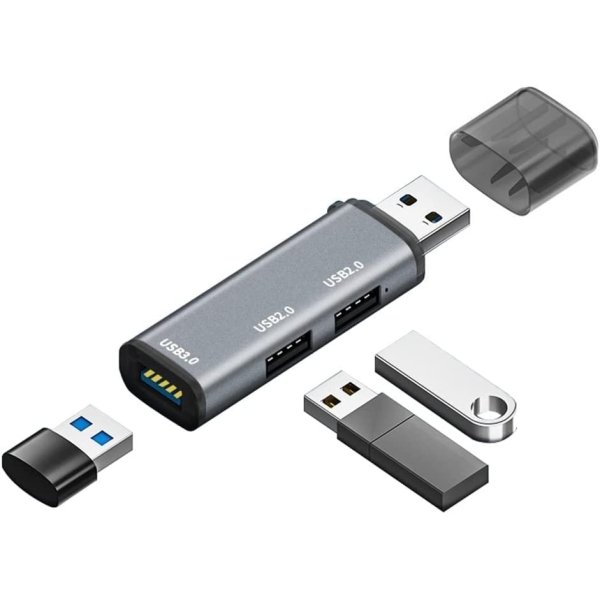 SPIN CART 3 Port USB 3.0 HUB Splitter, USB Extender Multi Port Adapter, 1 Port USB 3.0/2 Port USB 2.0 for PC, Laptop, Card Reader Flash Drive