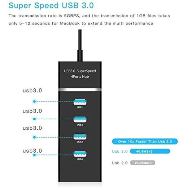 - Strong compatibility: 4 Port USB hub plug and play, no need to drive, compatible with windows, Mac OS X, Linux and other systems. USB 3.0 hub is backward compatible with USB 2.0 and USB 1.1. Special note: Mobile / tablet OTG extension is supported, but mobile / tablet must have OTG function, and OTG adapter needs to be purchased separately.