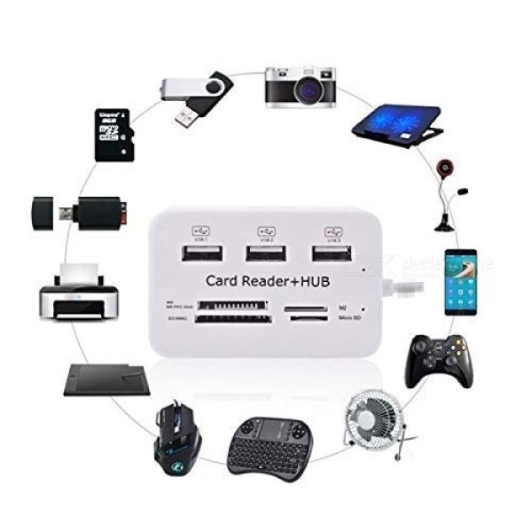 - HIGH EFFICIENCY: USB Hub mixed with card reader means you can read and write on 4 different card types as you use 3 USB ports at the same time. easily to transport data from each card or connection device, and all in exchange for 1 USB port on your computer.