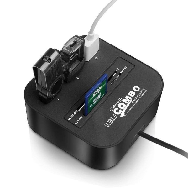 • COMPATIBILITY: Plug it into your computers USB port, it will receive 4 card readers and 3 USB 2.0 Ports. Lightweight and portable with low power consumption, it is suitable for desktop and notebook PC.