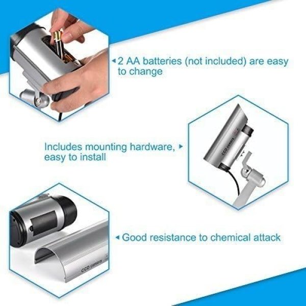 - DETERRENT FEATURES: Equipped with red flashing LED indicator that creates convincing illusion of active recording
