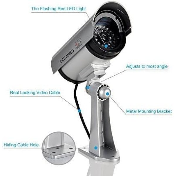 SPIN CART Dummy CCTV Security Camera, Indoor Outdoor Surveillance Camera with LED Flash, Silver