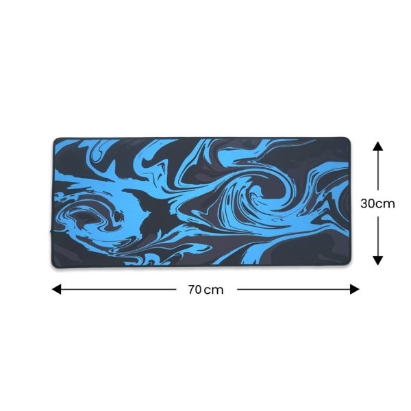 PREMIUM DESIGN: Large gaming mousepad with stitched edges measuring 70 x 30 cm, featuring an eye-catching abstract blue swirl pattern on black background