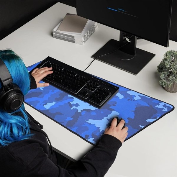 SPIN CART Long Gaming Mouse Pad, Large Big Desk Table Mat with Non- Slip Rubber Base Mousepad for Keyboard Laptop PC (Blue)