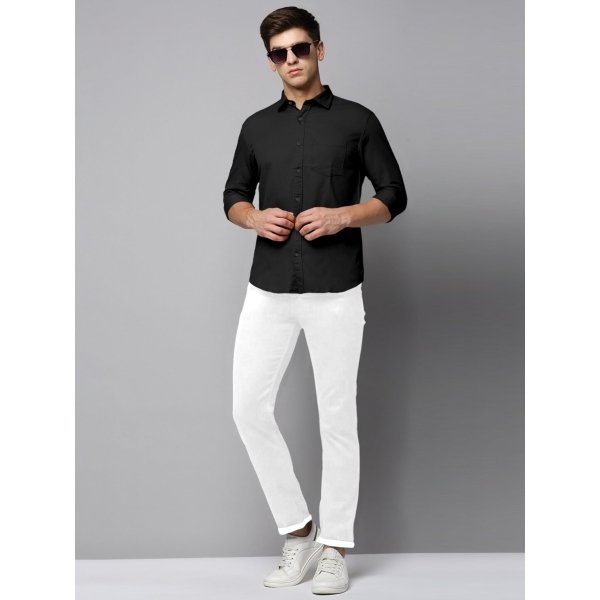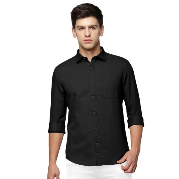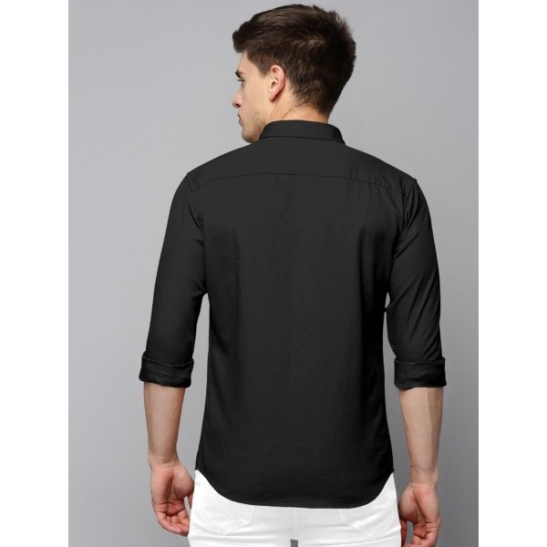 SPIN CART Men’s Cotton Shirt, Regular Fit Full Sleeve with Pocket Casual Formal Shirt (Large, Black)