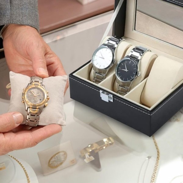 - STORAGE CAPACITY: Features 3 dedicated slots with removable soft cushioned pillows to safely store and display precious timepieces