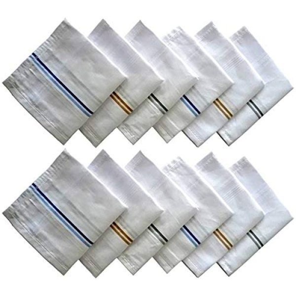 SPIN CART Selected Hanky 100% Cotton Men’s Handkerchief- Pack Of 12- White Strip XL