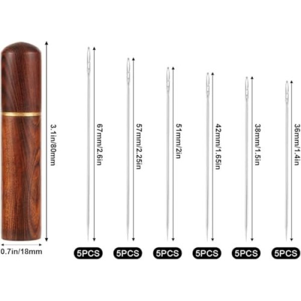 - VERSATILE SIZES: Includes 30 needles in 6 different sizes ranging from 3.6 cm to 6.7 cm to suit various sewing needs