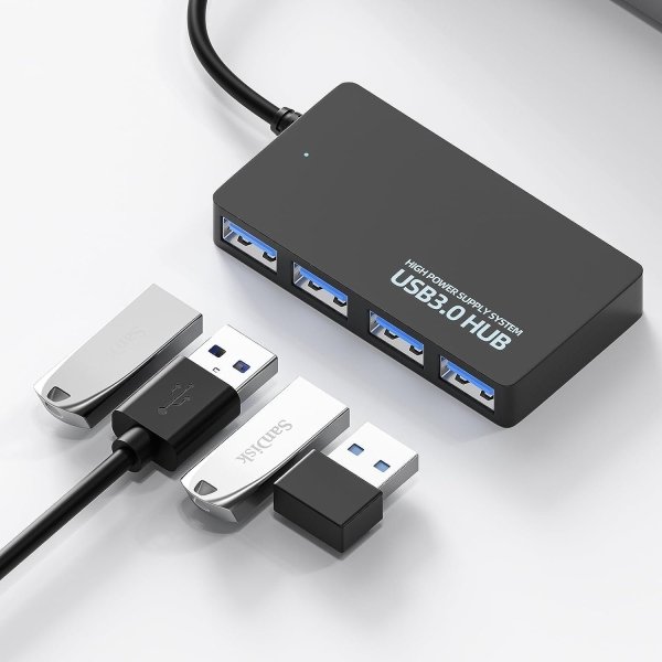 - 4-port USB splitter provides 5 Gbps stable data transfer and is compatible with 2.0/1.0
