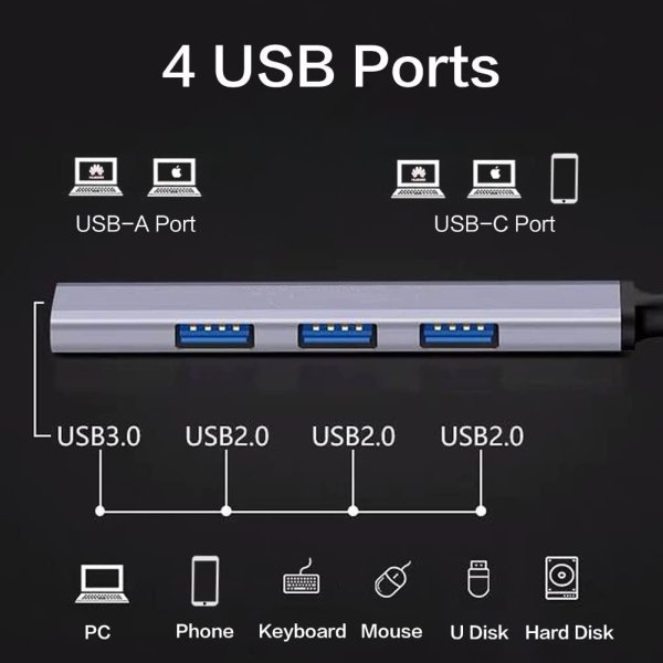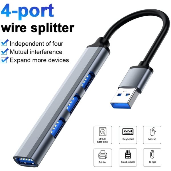 • Multi-Port USB Extension Hub: This USB 3.0 Hub Splitter could help expand to 4 Ports USB on your computer or Windows tablet, including hard drives, USB hubs, Mouse, keyboards, flash drives, printers, and more.