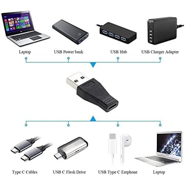 - USB C to USB A Adapter -This USB C(female) to USB A (male) converter for connecting USB C/Type C device like USB-C smartphones/ tablets/ laptops/ power bank and u disk to charge & sync data.