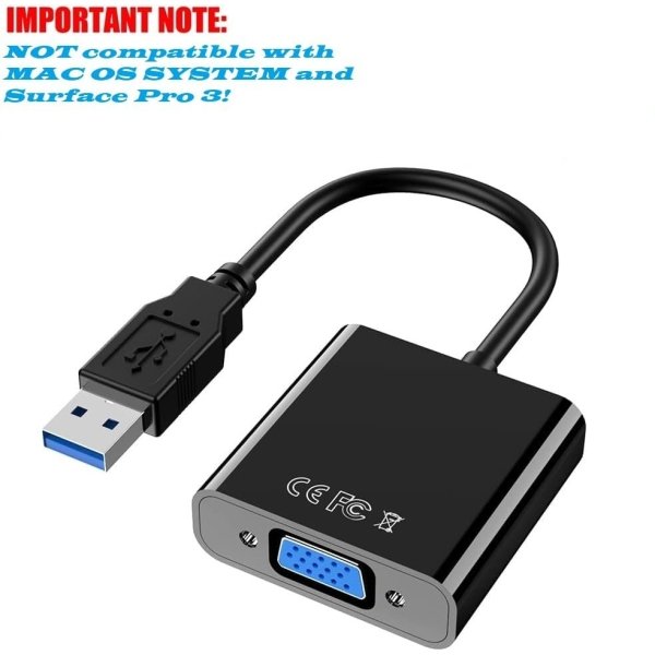 - Only support Windows 7 / 8 / Vista / 10! NOT compatible with MAC OS SYSTEM and Surface Pro 3! This USB 3.0 to VGA adapter is designed for video transmission from USB port of your Desckop or Laptop to VGA Port of your Monitor. To prevent you from compatibility problem,please DO NOT insert the usb 3.0 male connctor into TV or other devices.
